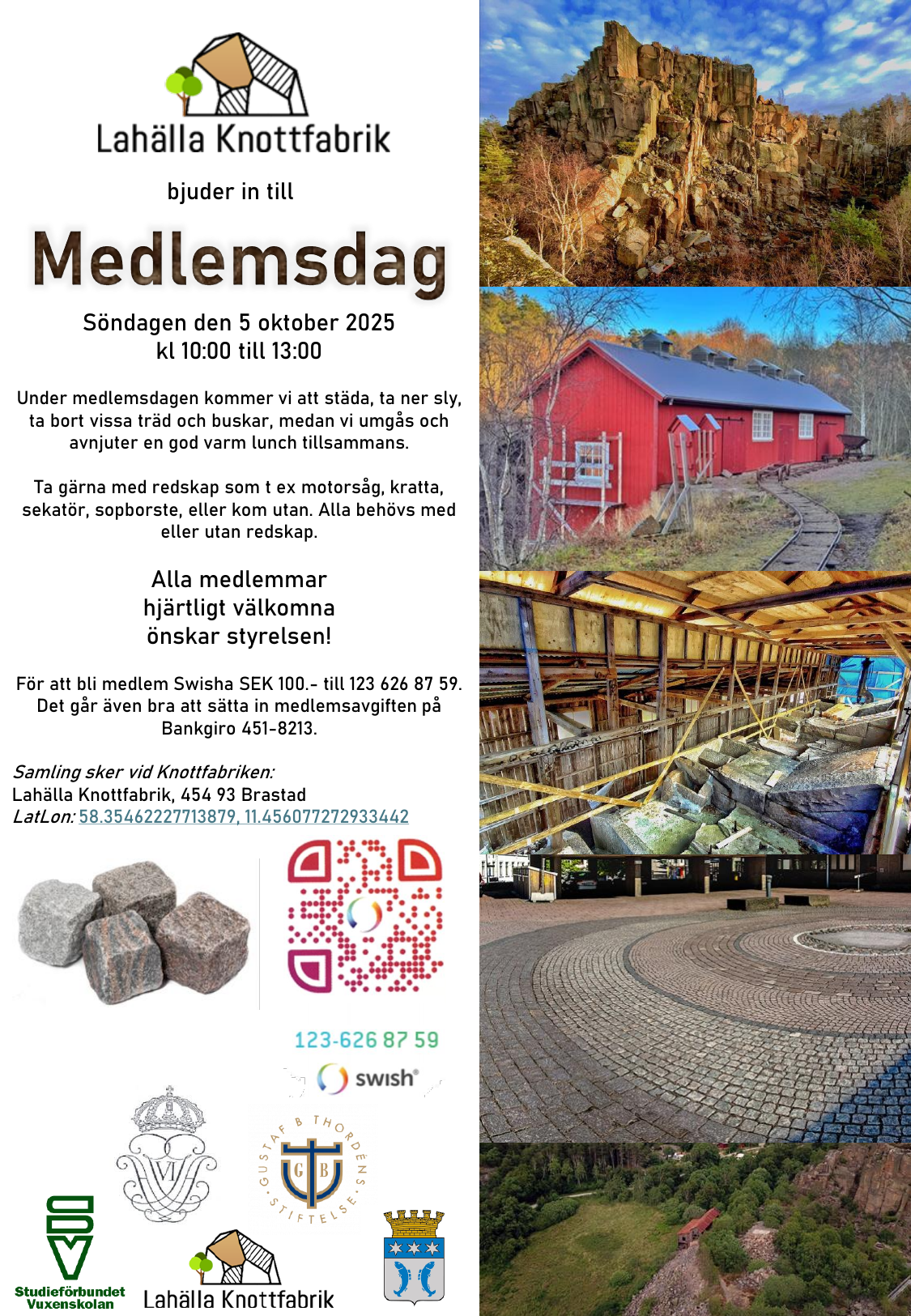 Vandra upp till Knottfabriken på egen hand under hösten, tänk dig ljudet av hammarslagen, sitt en stund på berättarbänken, passa på att rikta din smartphone mot befintlig QR kod och lyssna in den guidade berättelsen, njut av utsikten och hedra de skickliga stenhuggarna som hade sitt dagliga värv i bergen